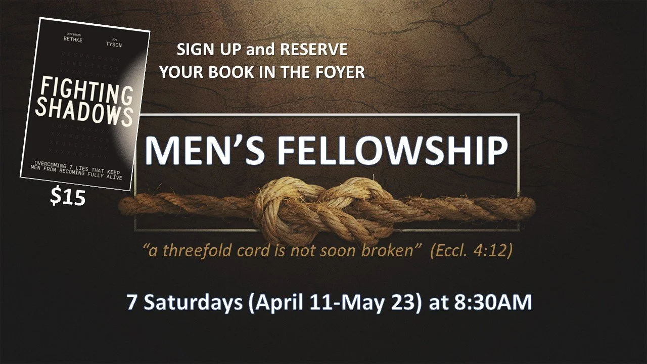 Join us Saturdays at 8:30am at the Men’s Fellowship, April 11-May 23.